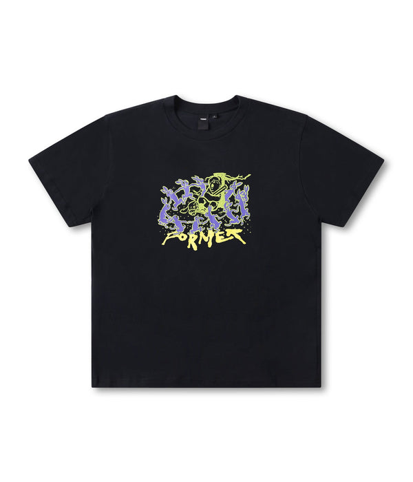 Crafted in a premium 200GSM jersey cotton and delivered in our standard FORMER T-shirt block for a modern and comfortable fit. Featuring a front graphic in a soft hand plastisol and cracked print on a solid black base colour